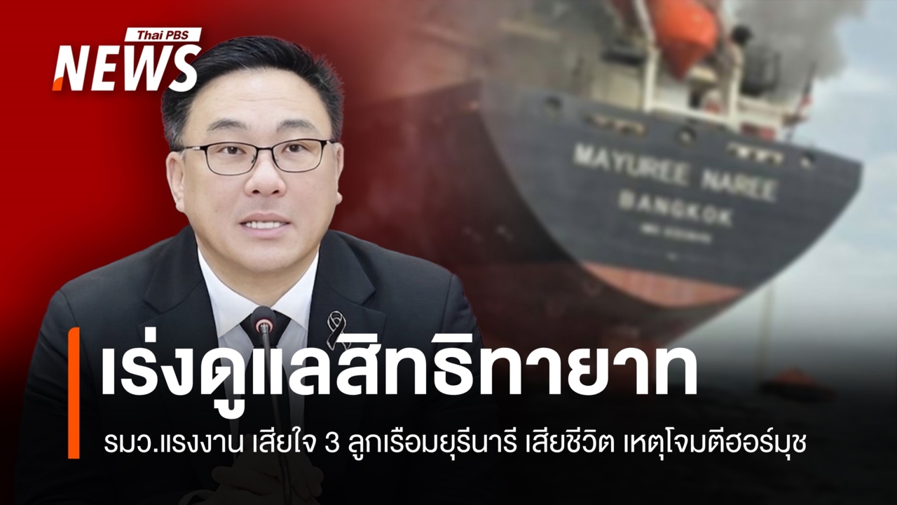 รมว.แรงงาน แสดงความเสียใจต่อครอบครัว 3 ลูกเรือ "มยุรี นารี" เสียชีวิตจากเหตุโจมตีในช่องแคบฮอร์มุซ เร่งดูแลสิทธิประโยชน์และเยียวยาทายาทตามกฎหมาย