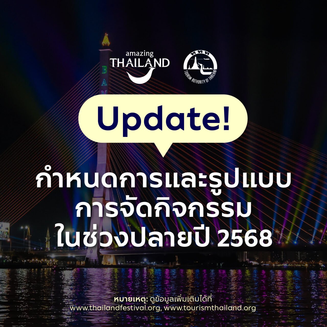 ททท. แจ้งปรับกำหนดการและรูปแบบการจัดกิจกรรม VIJIT CHAOPRAYA THAILAND 2025 และเทศกาลลอยกระทง ในช่วงเดือนตุลาคม-พฤศจิกายน 2568